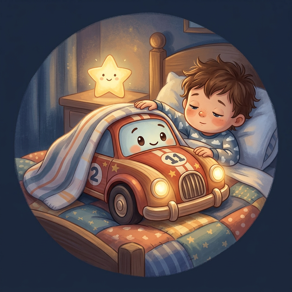Use your child's real race car toy as the hero. The story models the exact behavior you want, making bedtime routines easier to repeat.