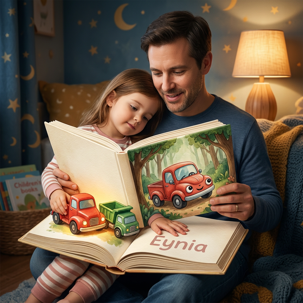 Parents already love Green Toys. This page turns that existing attachment into a custom bedtime adventure built around your child's real toy photo.