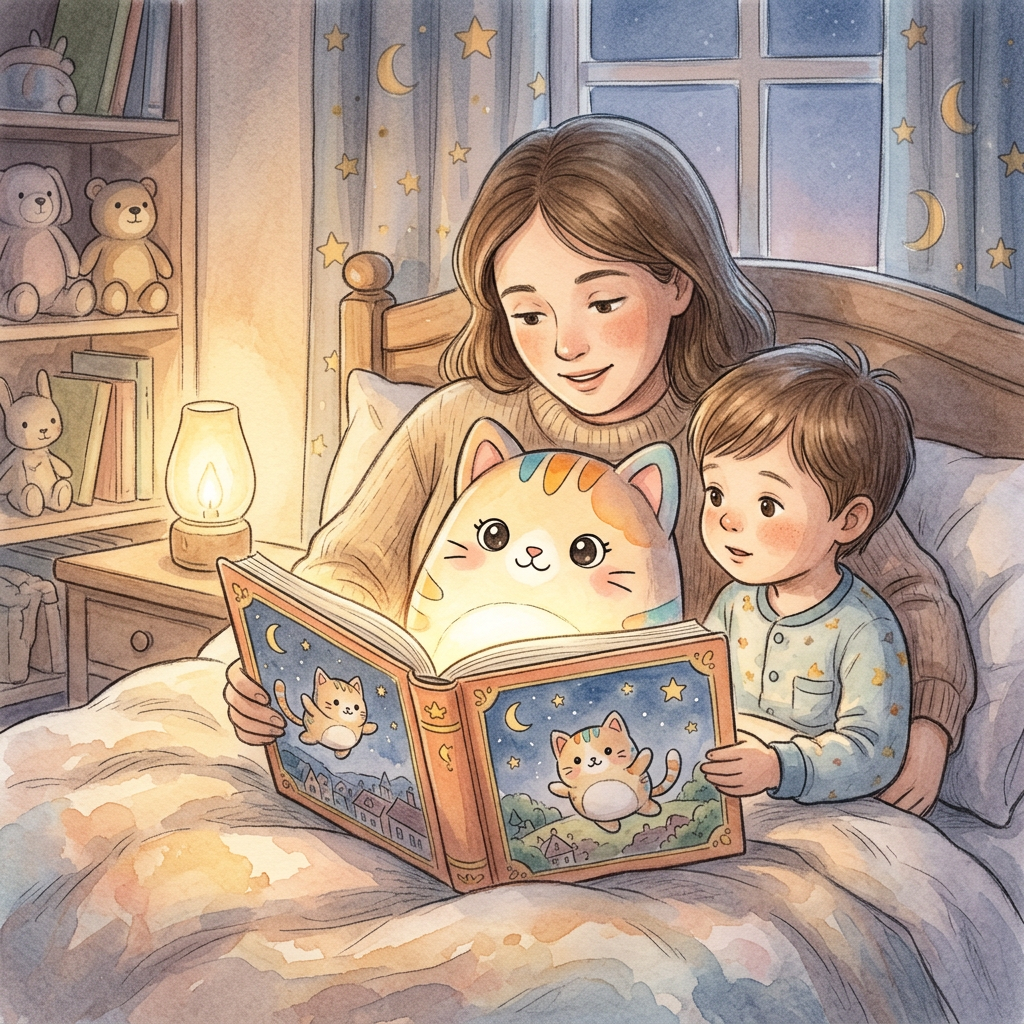 Parents already love Squishmallows. This page turns that existing attachment into a custom bedtime adventure built around your child's real toy photo.