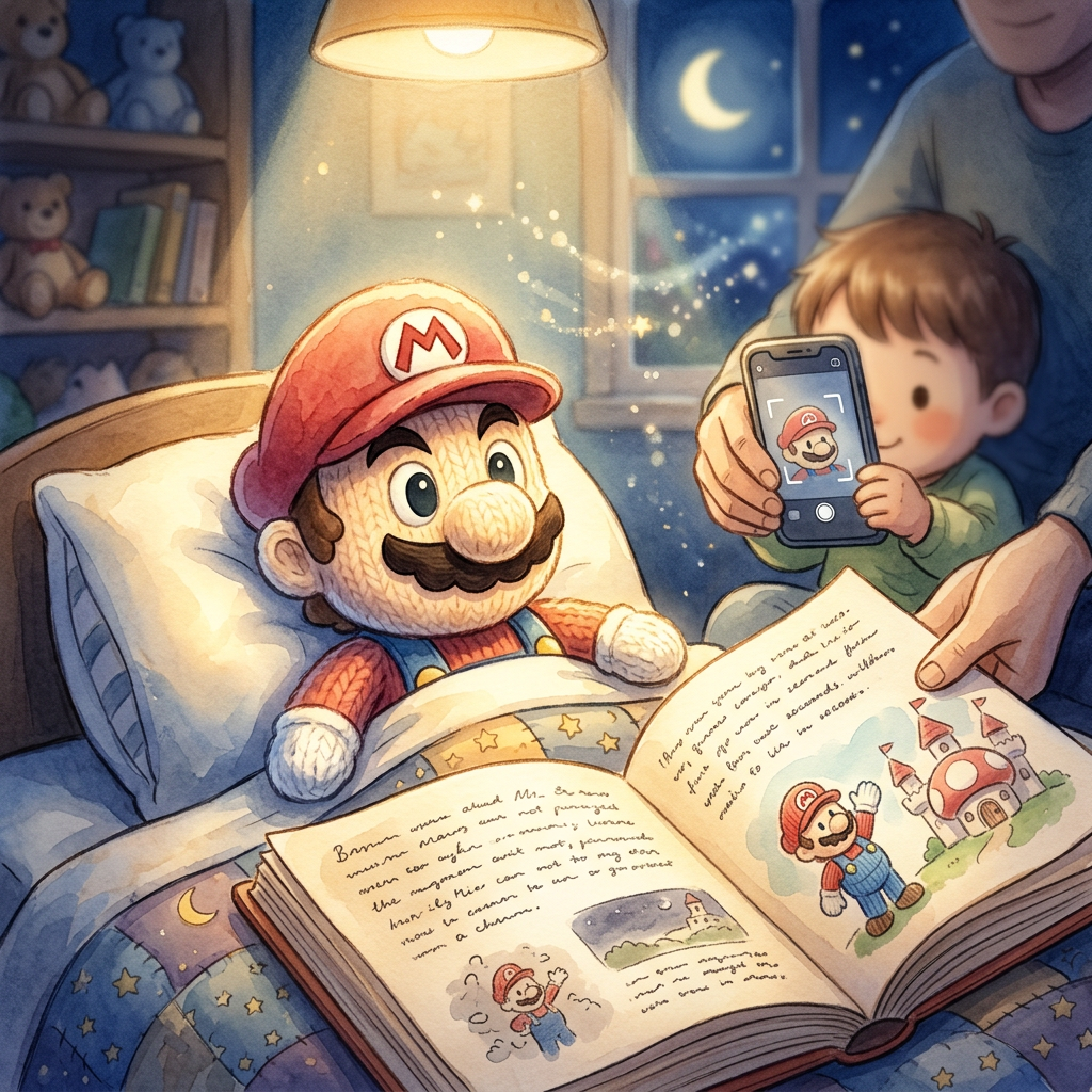 Turn your child's Super Mario Toys toy into a one-of-a-kind bedtime story with real toy-photo personalization and a fast 30-second start.